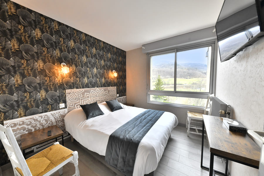 Les 24 chambres offrent confort moderne : TV grand écran, wifi gratuit, douche, WC, sèche-cheveux, plateau de courtoisie avec boissons chaudes et mini mignardises locales. Ascenseur, vaste terrasse avec vue exceptionnelle, et parking privé.